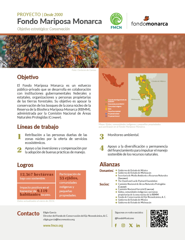 Los logros del proyecto son resultado del trabajo coordinado de la autoridad ambiental federal, los gobiernos del Estado de México y Michoacán, FMCN, WWF, ejidos, comunidades indígenas y personas propietarias de la zona núcleo que colaboran con la operación del Fondo Mariposa Monarca y los Fondos Concurrentes para incrementar el pago por hectárea conservada en la zona núcleo de la RBMM.